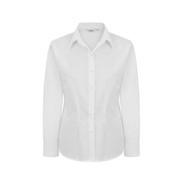 Disley Oxford Blouse with Classic Collar. Cotton Rich Easy Care Fabric - 70% Cotton/30% Polyester 130gsm. Long Sleeve (also available in short sleeve). Sizes 6-30 (for sizes 22-30 please contact us for pricing/availability).