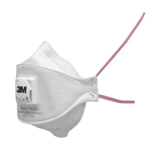 3M 9332+ Aura FFP3D valved flatfold disposable masks (Pack of 10).