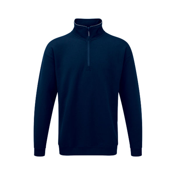 High quality premium weight 1/4 zip sweatshirt. Elasticated cuffs and waistband. Brushed fleece inner. Half moon yolk at neck. Set in sleeve styling. Ideal for corporate logo''s and very comfortable to wear. Triple stitched on all main seams for ultimate strength.