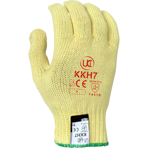 - EN388: 2016 level B cut resistance - High tenacity aramid yarn combines high tensile strength and cut resistance into a soft flexible yarn - Heavyweight machine knitted glove with an elasticated wrist made from 100% aramid yarn
