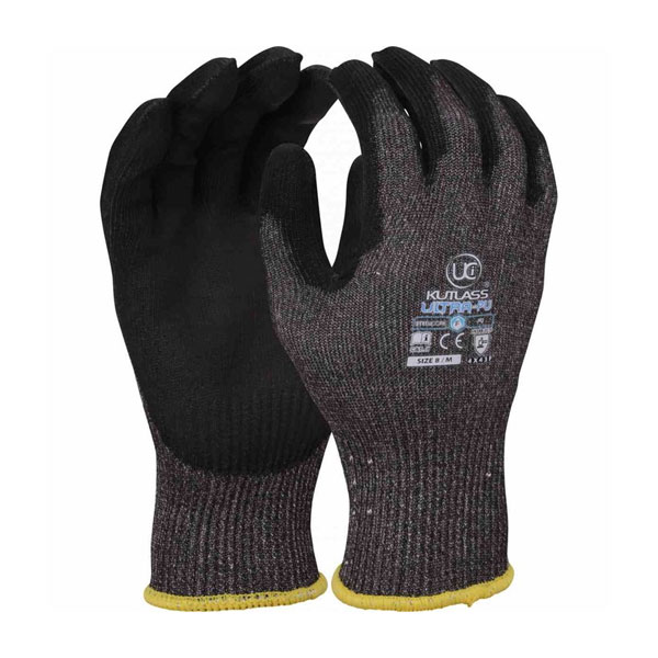 The Kutlass® Ultra-PU provides our maximum protection in a coated glove being tested to level F on the new TDM cut test as part of EN388:2016. The liner encompasses a 4 yarn special blend wrapped around a stainless steel core and plaited on the inside of the glove to offer the user a smooth, cool feel throughout use. A hard wearing PU coating to the palm allows for added dexterity and good grip in dry, wet or oily applications. Generous cuff offers great protection to the wrist area. This glove is perfect for use in high cut risk applications.